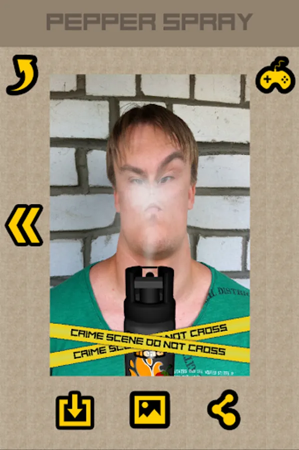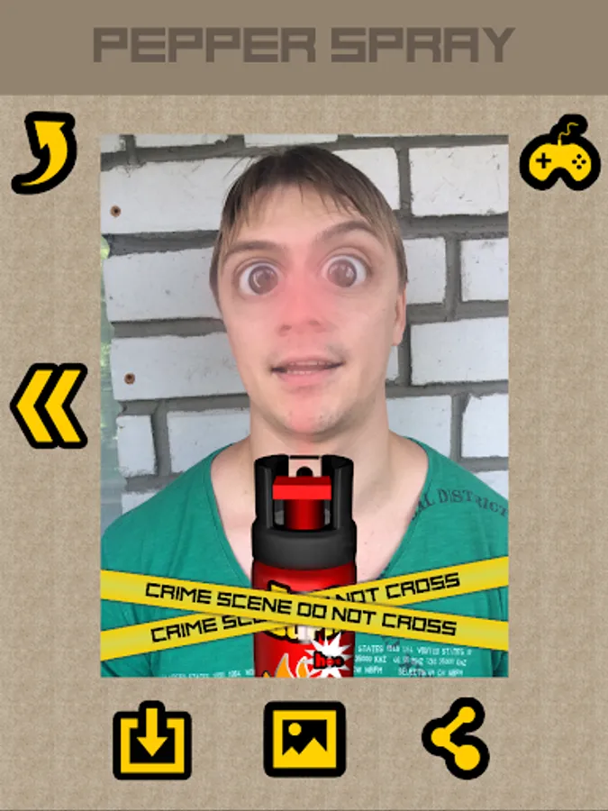 Pepper Spray [Photo Frame] is the best comic simulator of pepper spray in the world. In his arsenal there are different kinds of cans with a completely unique corrosive gases, each of which has its own effect on the victim. Catching the right moment and the offender, you can seal all this police tape or stickers with a set of frames available in the application. And finally, you can share any image with your friends on social networks or save it to your photo gallery.
