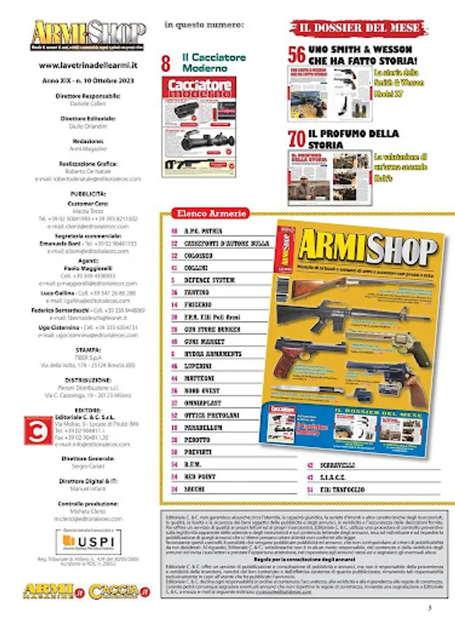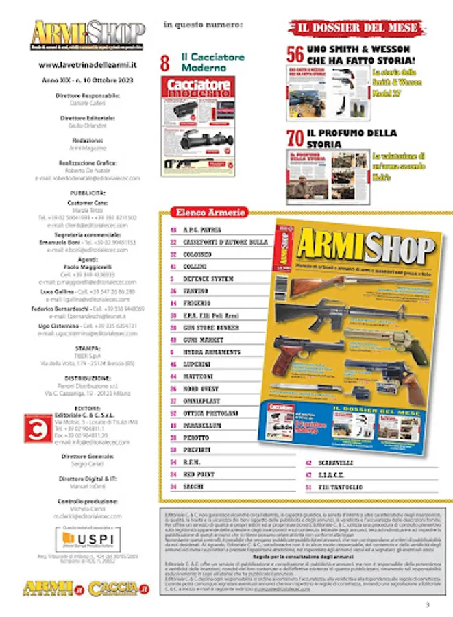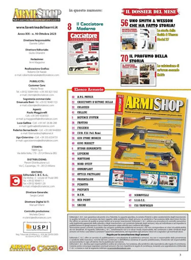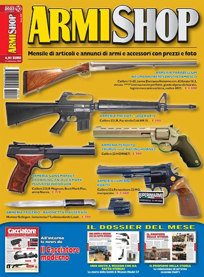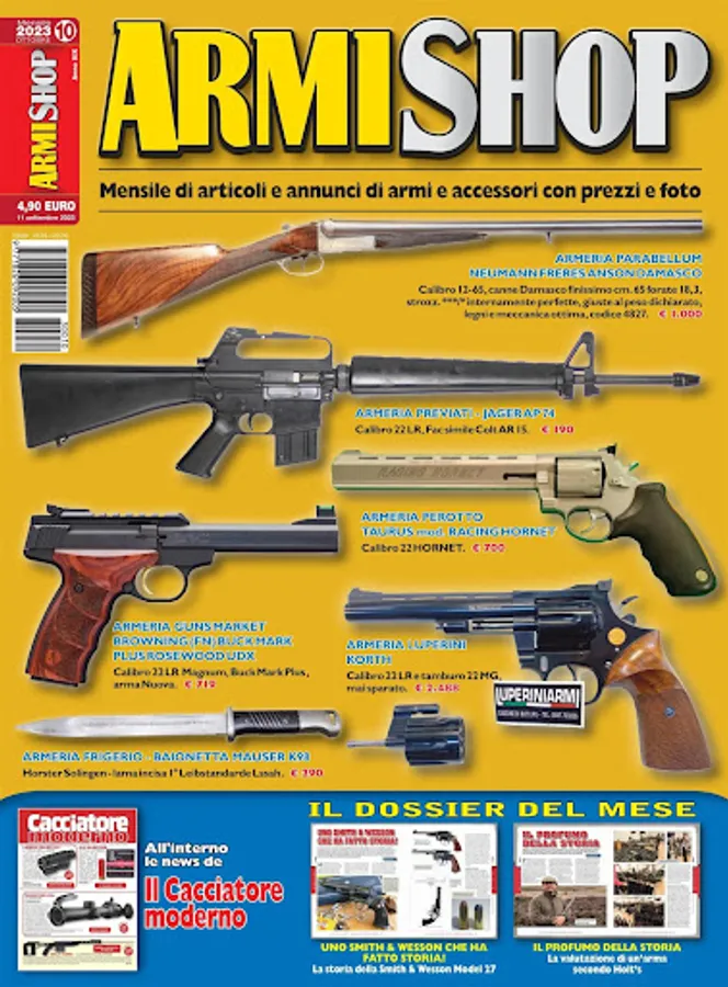 Rivista specializzata nel Compro & Vendo di armi usate e nuove da armieri e tra privati E’ diventata il riferimento ufficiale del mercato delle quotazione dell’usato. Un nuovo mezzo per le armerie di promuovere al di fuori del loro territorio sia armi che accessori o offerte speciali e promozioni in atto e per i lettori una ghiotta occasione di trovare pezzi speciali, da non farsi scappare, in ogni angolo d’Italia. La rivista presenta alcuni articoli riguardanti una specifica arma, i pregi, i difetti e le cose da controllare all’acquisto. Seguono gli spazi riservati alle varie armerie partecipanti. Spazi che vengono usati per illustrare sia l’offerta di armi usate presenti in negozio che prodotti che vengono posti in offerta a prezzi di sicuro interesse. Molte armerie hanno quindi la possibilita’ di ritirare armi usate in cambio di acquisti del nuovo, sapendo di avere un mezzo di promozione distributio su tutto il territorio italiano. I prezzi come in un grande mercato “trasparente” si allineano tra di loro diventanto uno strumento di grande utilita’ per i possibili acquirenti.