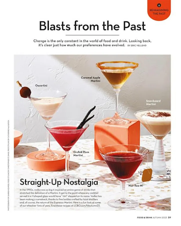 Food & Drink is the free customer publication for customers of the LCBO, Ontario’s provincial beverage alcohol retailer. It is dedicated to the art of entertaining, inspiring readers with tempting recipes and the latest information on wine, spirits and beer. Food & Drink‘s experts equip readers with sophisticated yet accessible entertainment advice and tools for relaxing or socializing with family and friends. Beautiful photography and relevant articles are to create a guide for entertaining that readers refer to time and time again. People love Food & Drink and it has always been a coveted item for LCBO customers in stores and now is available digitally.