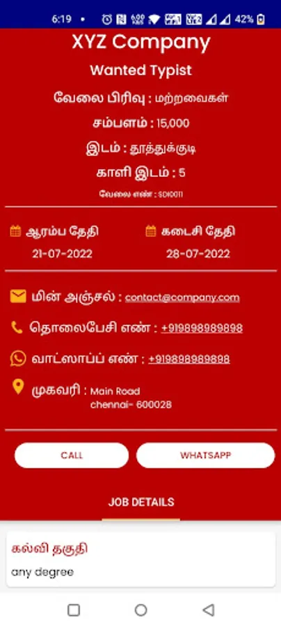 இந்த ஆண்ட்ராய்டு செயலி, வேலை தேடும் மக்களுக்கு மற்றும் வேலை அளிக்கும் நிறுவனங்களுக்கும் பயன்படும் நோக்கத்தில் வடிவமைத்துளோம். இந்த செயலியின் மூலம் அநேக மக்கள் பயனடைவதே எங்களின் பிரதான நோக்கம். வேலை தேடும் அணைத்து மக்களும் இந்த ஆண்ட்ராய்டு செயலியை சரிவர பயன்படுத்தி பயன்பெற்று மற்றவர்களுக்கும் இதை அறிமுகம் செய்து அவர்களையும் பயன்பெறச்செய்து இந்த செயலிக்கு ஆதரவு அளிக்க வேடுகிறோம்.