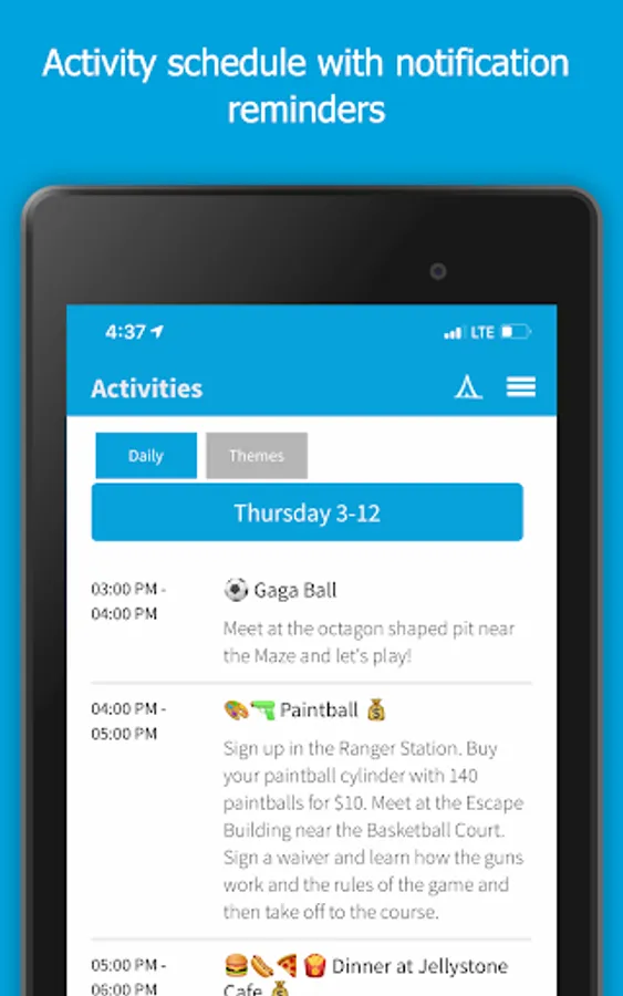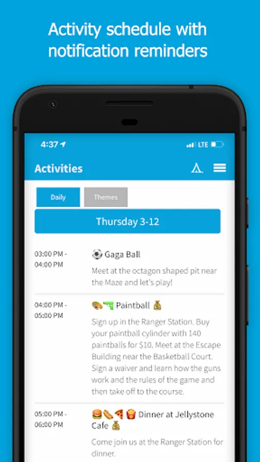 Please note that amenities, activities, character interactions, and accommodation options vary by location. Some app features may not be available at all locations.