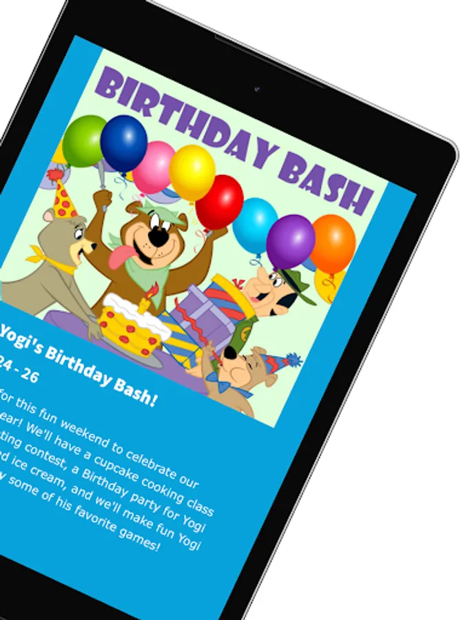 Yogi Bear’s Jellystone Park™ Camp-Resorts is the nation’s leading family camping destination. Jellystone Park locations are famous for providing guests with amenities such as pools, water slides and splashgrounds; activities such as jumping pillows, mini golf, foam parties, and arts and crafts projects; theme weekends such as Chocolate Lovers Weekend, Christmas in July, and Halloween Spooktacular Weekends; and interactions with Yogi Bear™ costumed characters.