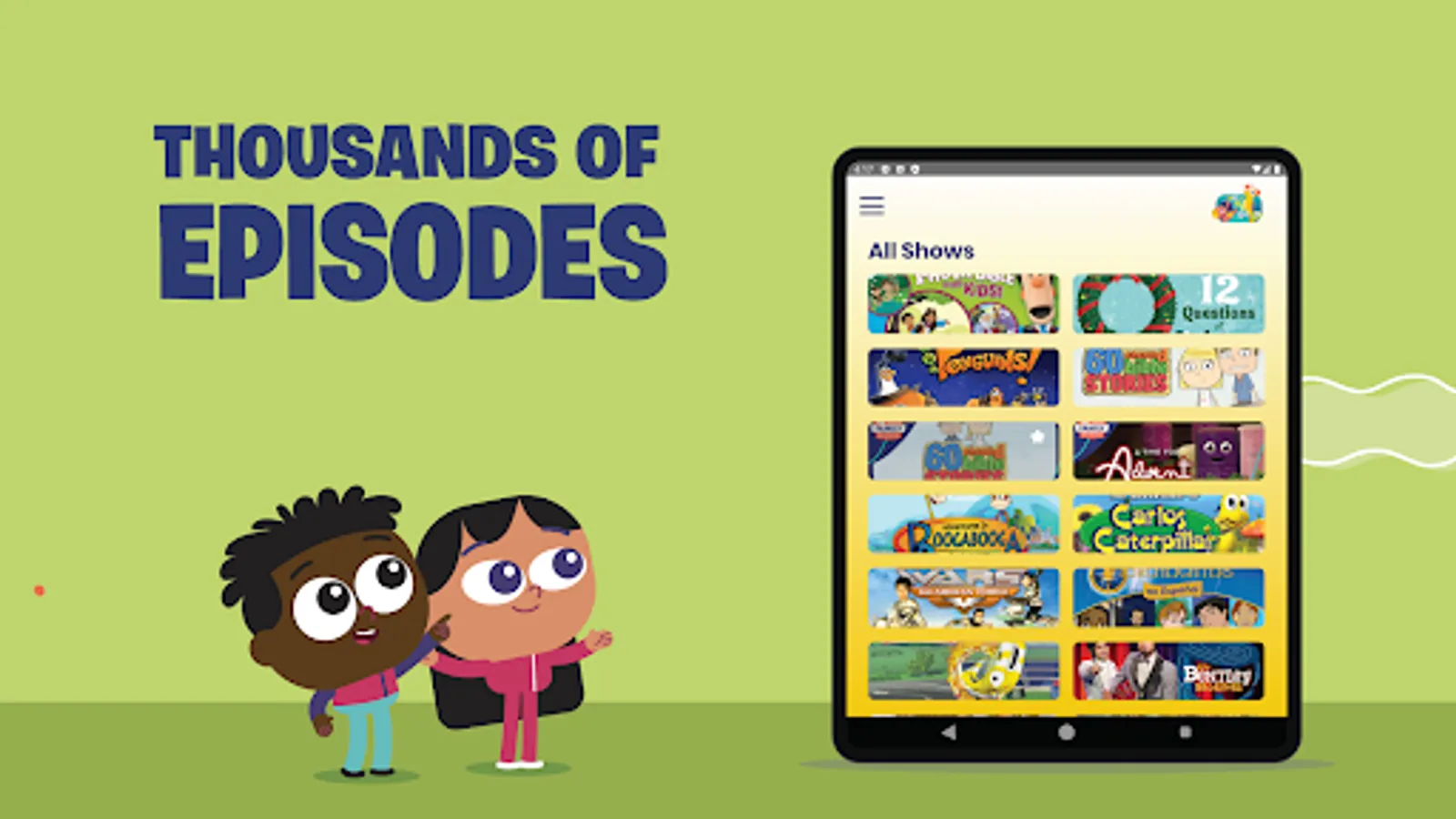 - Mainstream quality videos by creators from PBS Kids, Nickelodeon, Cartoon Network