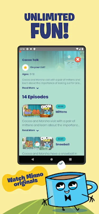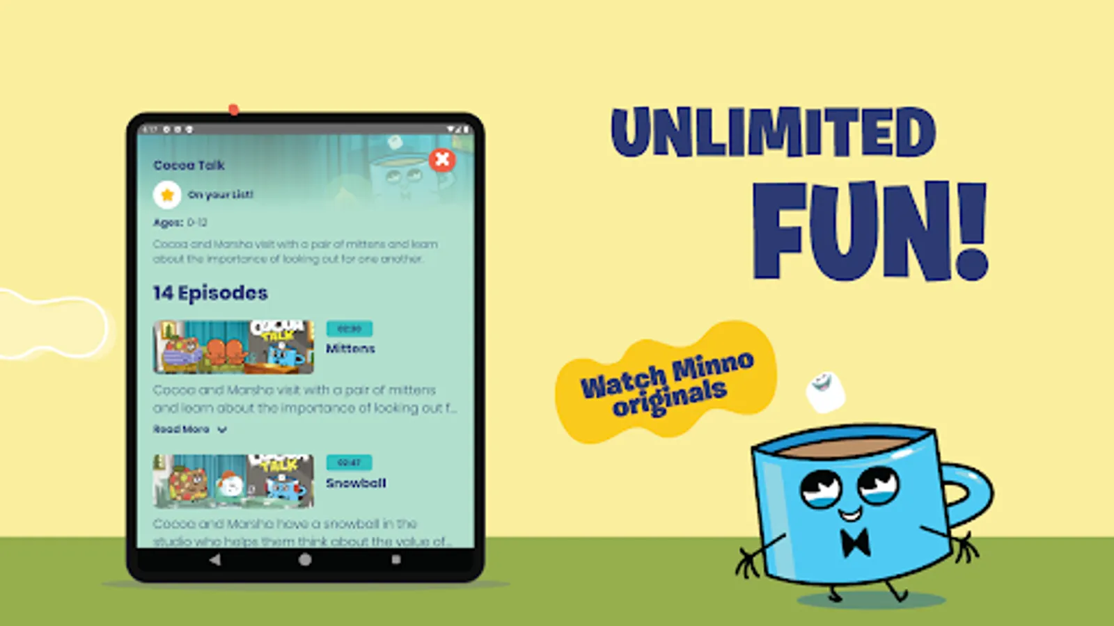 - Fun, original content like Cocoa Talk, and the Minno Day Show – a “variety show” for kids
