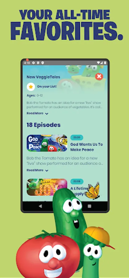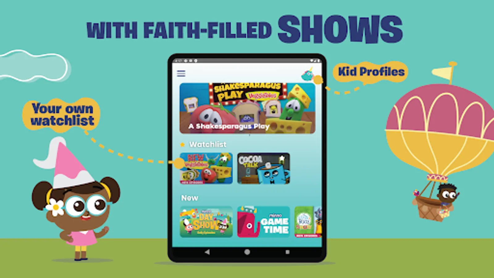 - 50+ episodes of VeggieTales with new releases ahead (US and Canada only), plus specially curated Silly Songs