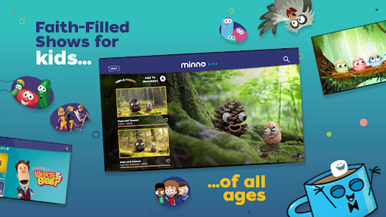 Minno is the #1 source of Christian content for kids. With Minno Kids, you can safely stream endless hours of popular, faith-filled shows and devotionals that put Jesus and the Bible first.