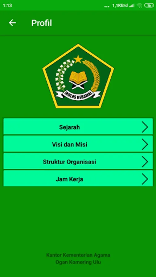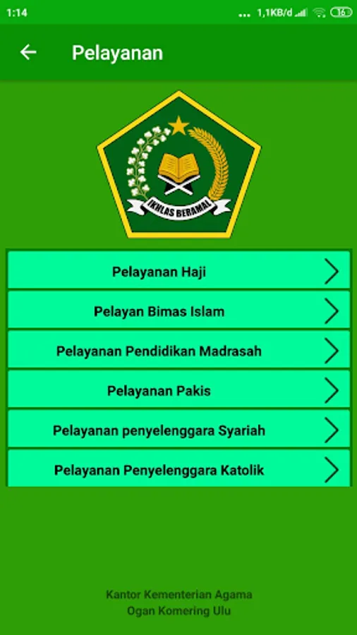 KEMENAG Application of OKU Regency is an application of Company Profile which contains information about OKU Regency Ministry of Religion Office based on Android. The aim is to facilitate the people of Ogan Komering Ulu in knowing information from the OKU District Ministry of Religion.