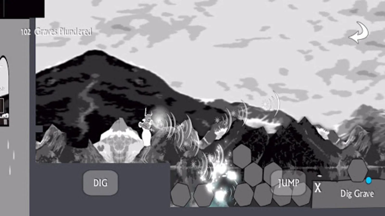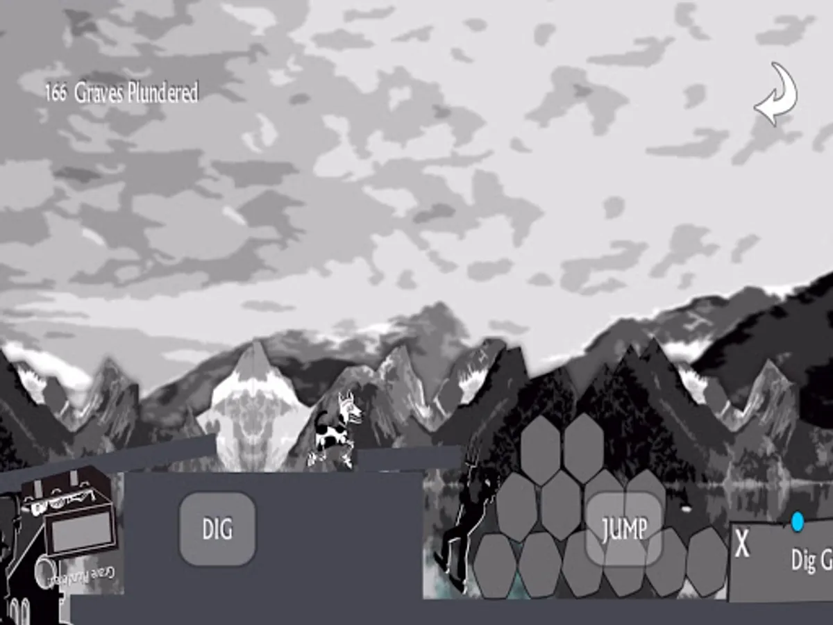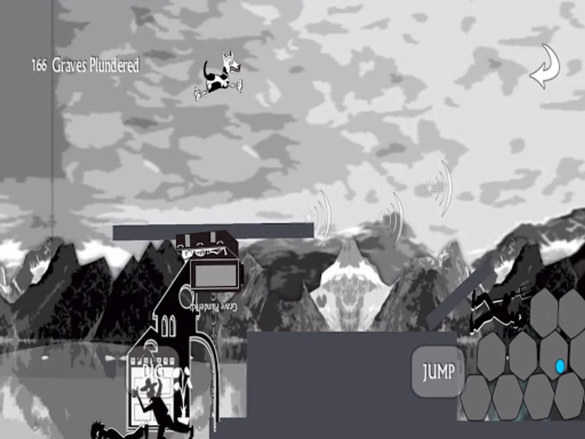 Controls are swipe left or right, dig, and jump. Use your dig button as a weapon to shoo the crows out of your way, fight the angry mob of villagers, and battle other strange beasts that go bump in the night. Click the white arrow in the top right corner if you fall spiraling endlessly into the abyss. It can happen.