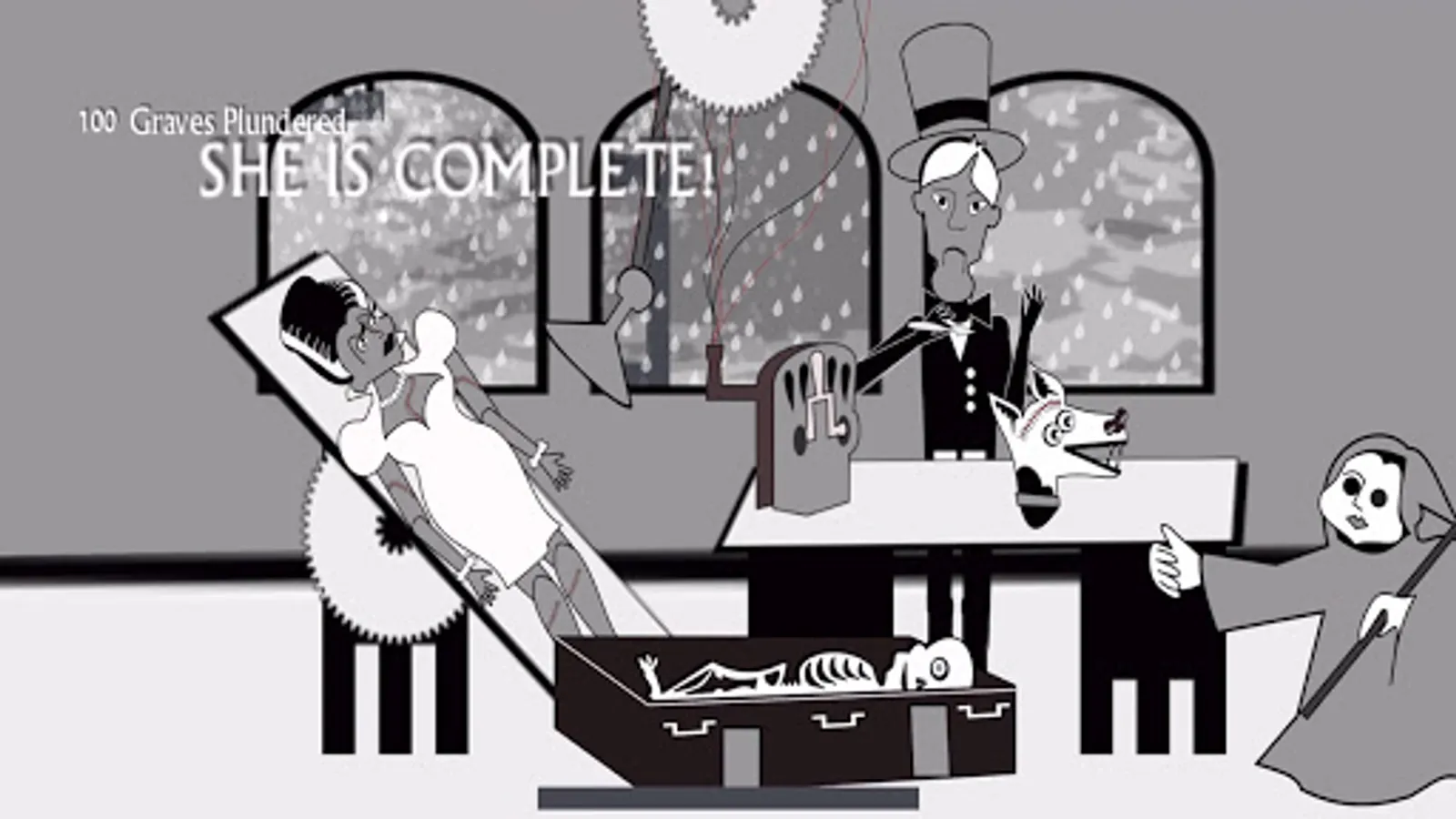 Help Igor plunder graves and gather enough body parts for Doctor Frankenstein to build a Monster. Then play as the Monster gathering more body parts to build a Bride. The madness doesn't end there. She collects even more parts to build herself a pet dog.