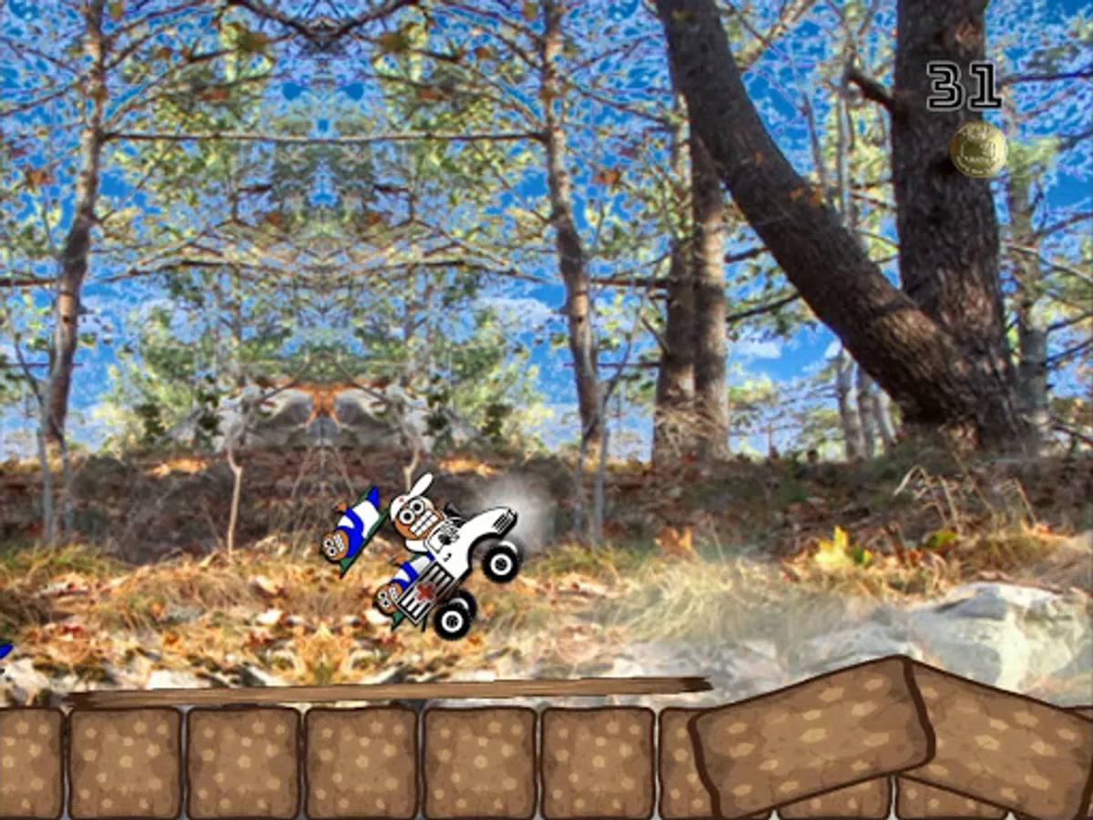 Minimogs are amazing off road vehicles. The Minimog game is all about going as fast as you can through tons of chaos grinding everything into oblivion as you go. Collect coins in hard to reach places, but don't wreck the truck. The boss will get mad. When things go wrong, stop off at Lou's Garage and he will fix you up in a jiffy. Spend your collected coins to upgrade to different Minimog trucks. Mindless arcade 4-wheelin' fun.