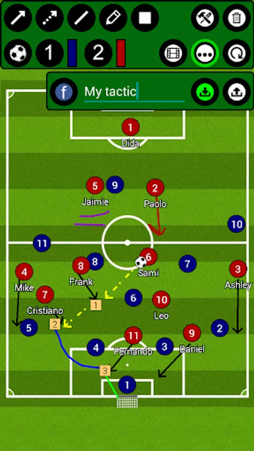 Football Tactic Board, allows you to create your own tactics for every match situation, for FREE and NO REGISTRATIONS nor payments are needed for more advanced tools ;). Intuitive UI, simple, quick using.
