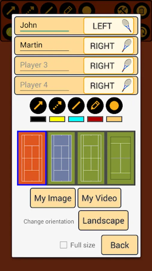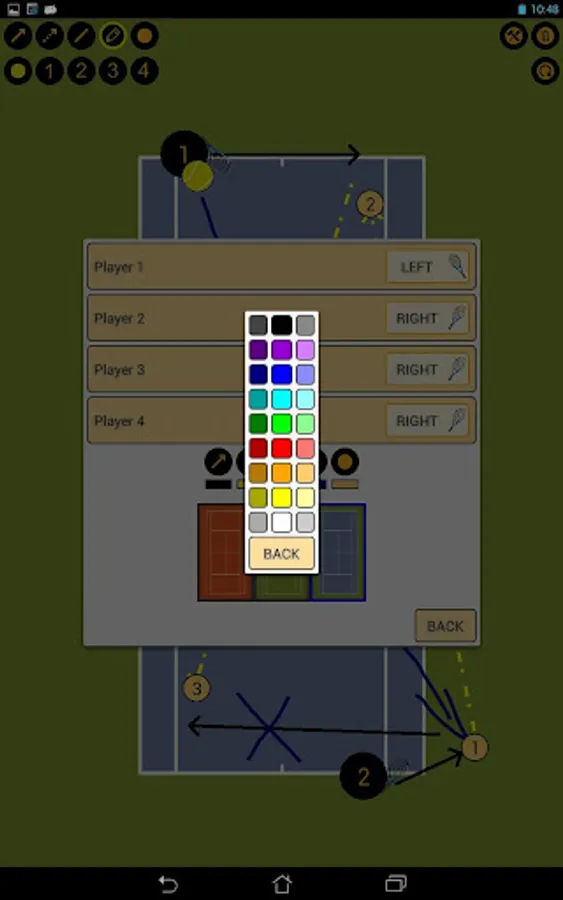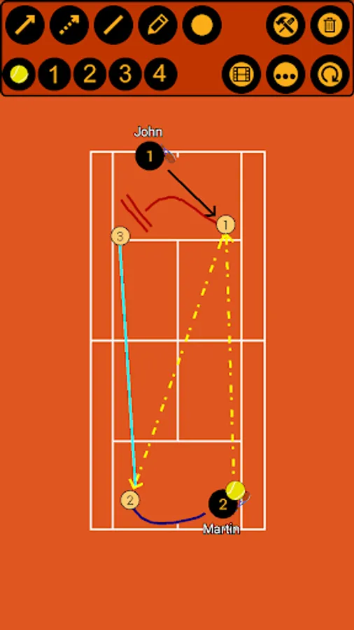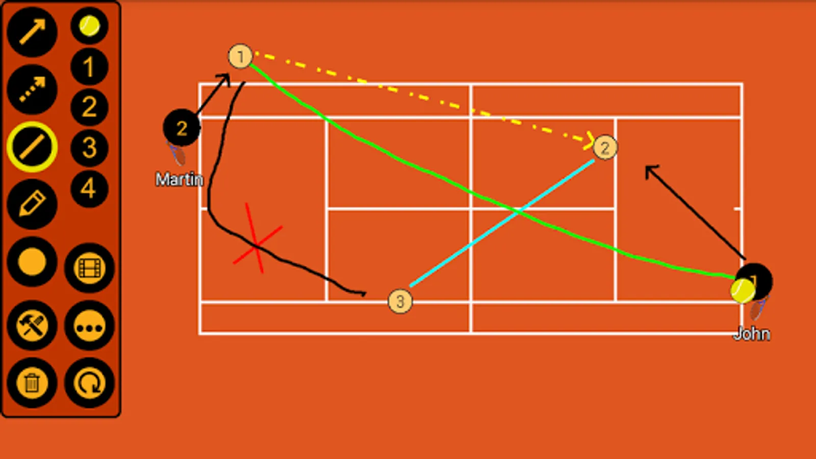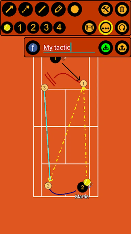Tennis Tactic Board, allows you to create your own tactics for every match situation. You can use from one to four players, you can change players favourite hand for more percise tactic. Tennis Tactic Board provides you four tools! Circle with number of circle inside! Sipmle Line, Arrow and Dotted arrow! Everything you need to explain your tactic!