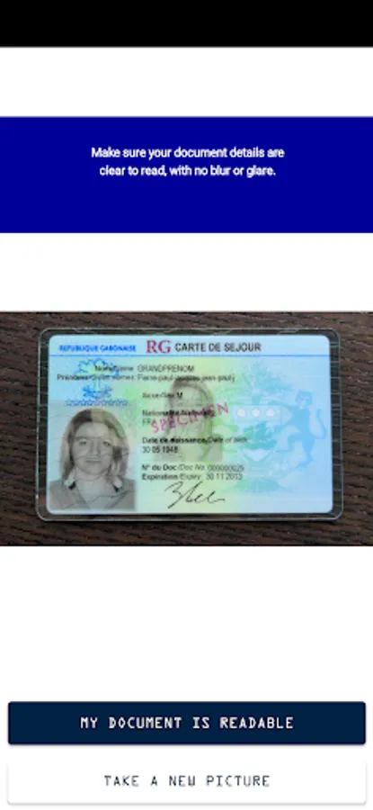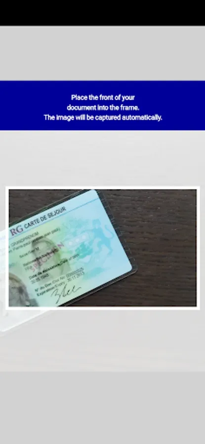 1. With your smartphone camera, take a picture of your identity document. In the first verification step, the system categorizes which type of document it is. In the second step, the document is checked for numerous security features.