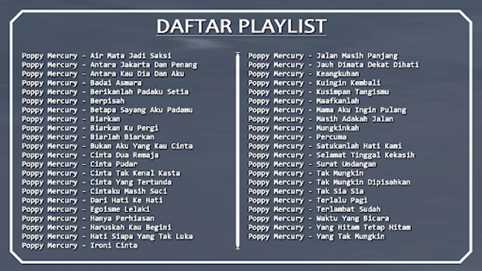 There are many ways to find old memories song applications because we provide a collection of songs in one application, this latest full album Poppy Mercury song.