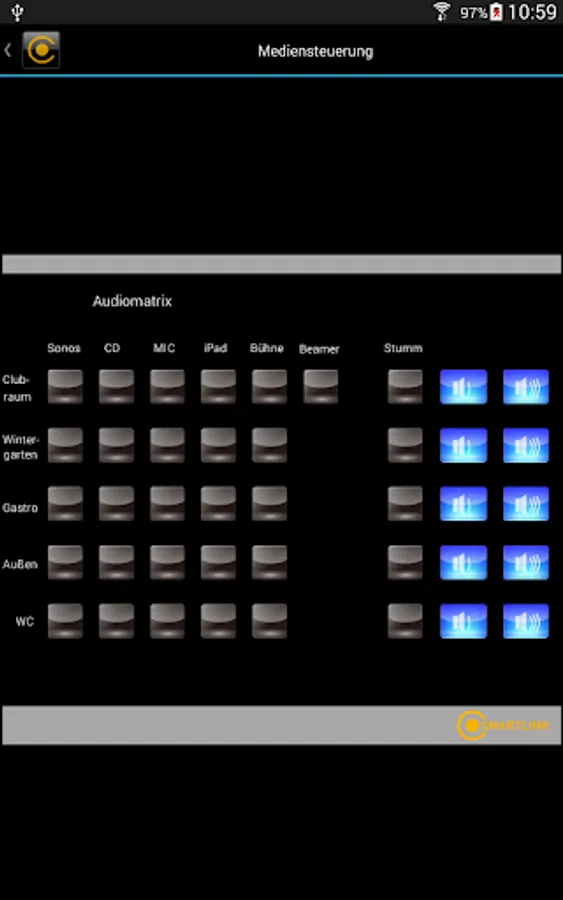 The primary area of application is building automation. The server IB101 networked different, common building automation bus systems and provides convenience features available. SmartLink Control is the mobile visualization for this system, the company communicates with KNX, LON, Beckhoff PLC, Honeywell and Sonax alarm systems, Crestron and DMX. Continue to be freely configurable scenes, a timer and a presence simulation. A controller for media devices that can be controlled via RS232 or network is also available.