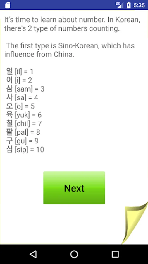 If you are learning Korean language - Hangul, you will have a difficult time memorizing their numbers. Feeling the same thing? This app can help you remember all the Korean numbers easily. From Korean sino numbers to Korean native numbers, you will be able to study and memorize all this Korean numbers in your head.