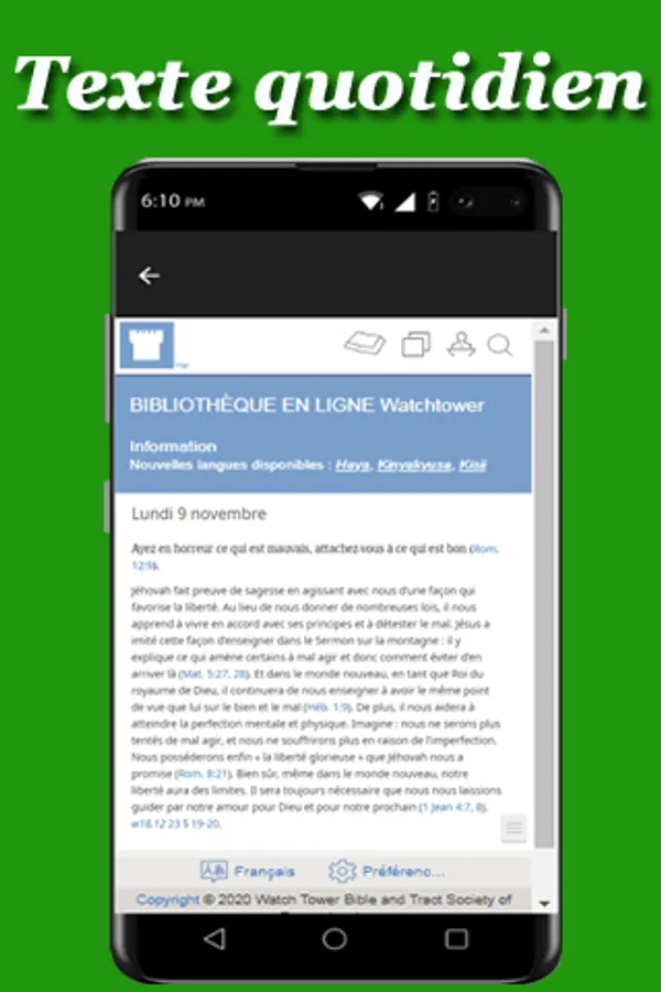 - Access to daily texts online and offline.