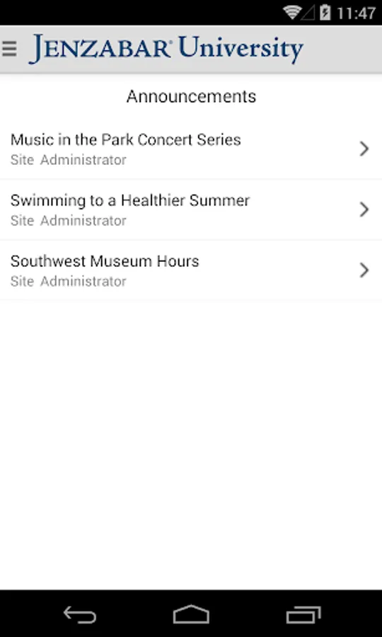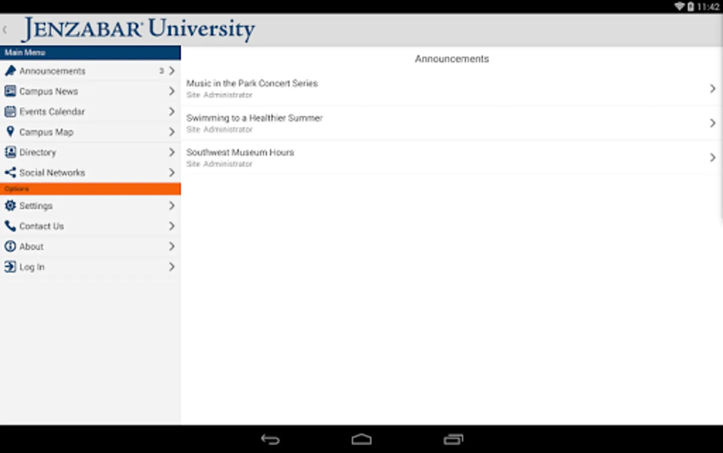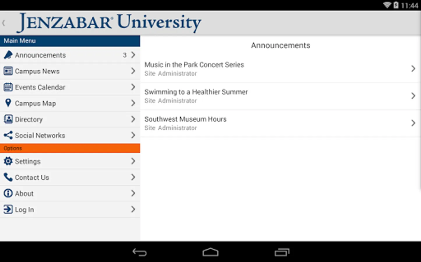 Jenzabar Mobile App is the quick and easy way to give your mobile community apps designed with your school colors, logo, and branding. Obtain individual branded apps for customized purposes (such as sports, campus visitors, alumni, or faculty), or even build a general app version of your entire campus portal.