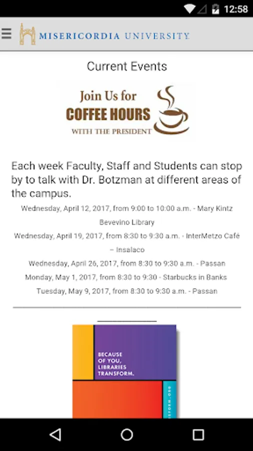 Students, staff and faculty members can use myMU Mobile to access important university information such as: