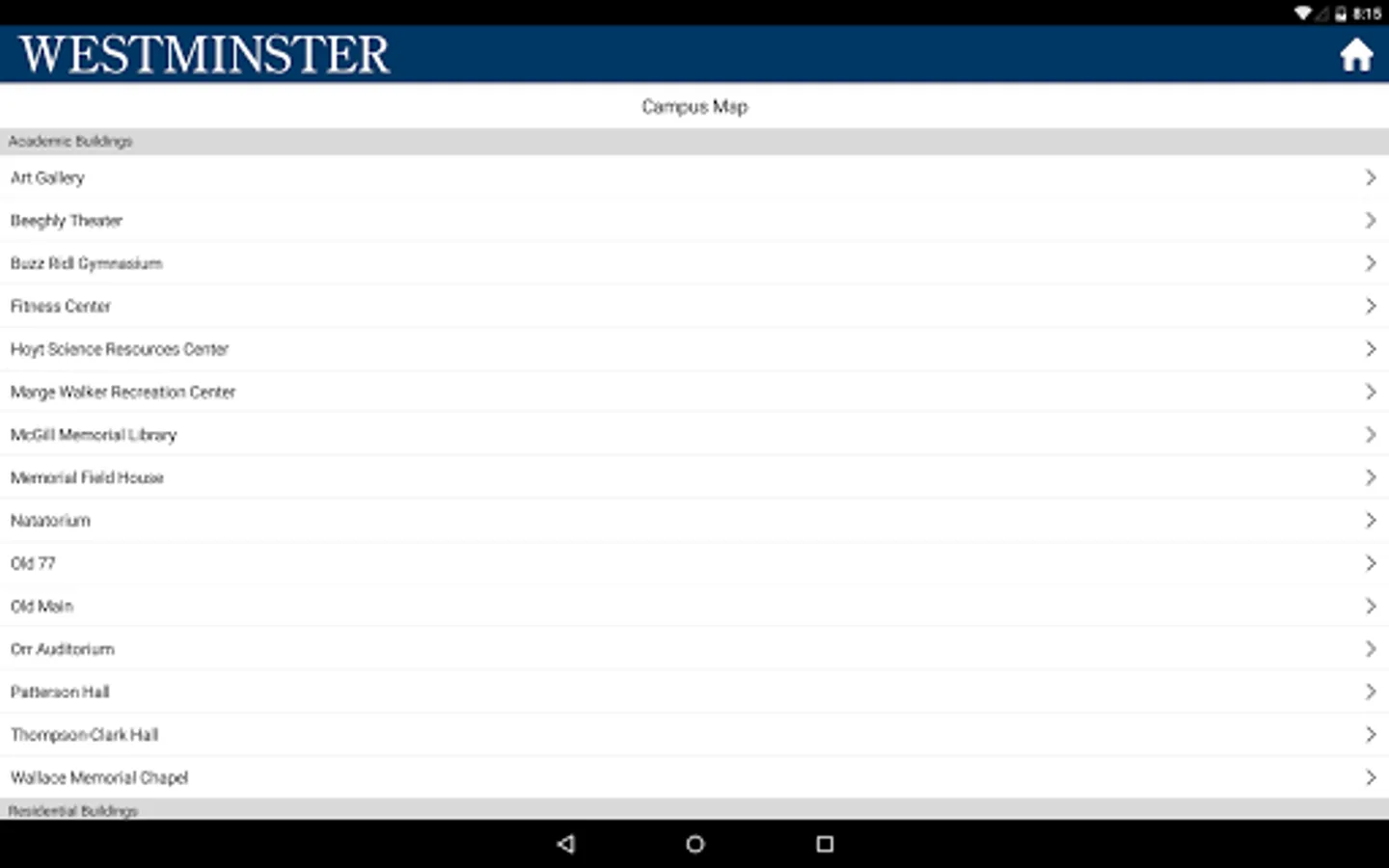 With the WestminsterPa app, students can view announcements, weather, social media, participate in your Campus Group, view maps of the campus and search the campus directory.