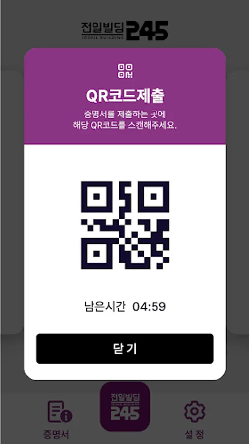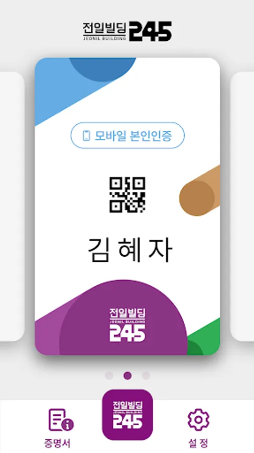 It is a mobile app for self-authentication and pass certificate for Jeonil Building 245 employees.