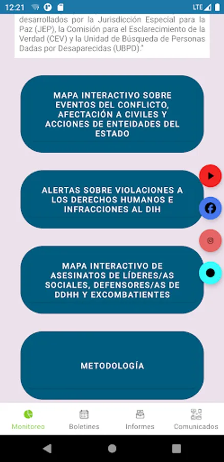 The systematized information comes from the daily monitoring of: 197 media outlets, 637 Twitter accounts of human rights organizations, State entities and multilateral organizations interested in the implementation of the Peace Agreement, and the Early Alerts issued by the Ombudsman's Office. Village.