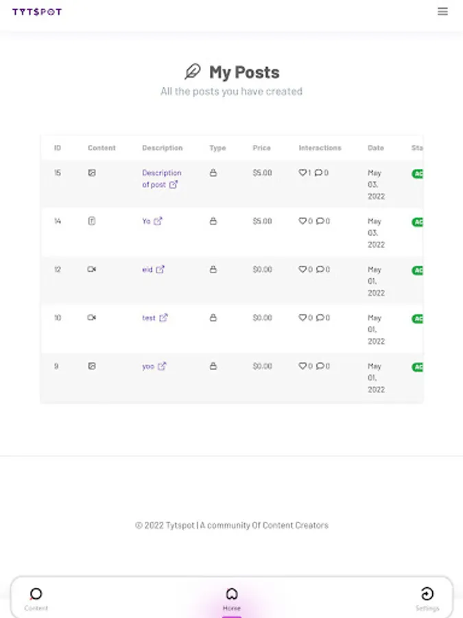 For creators, Tytspot is a way to get paid for creating the things you’re already creating (streams, videos, songs, whatevs). Fans subscribe per month OR per post you release, and then you get paid every month, or every time you release something new.