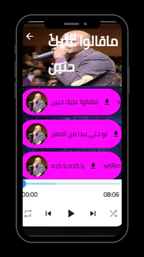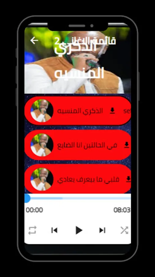 The application shows you the most beautiful songs of Sudanese singer Jamal Farfour in mp3 format