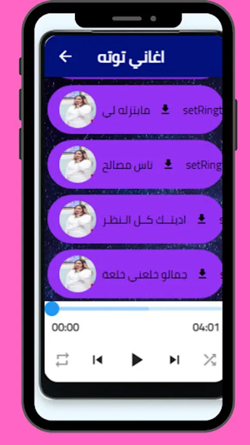 The application shows you the most beautiful songs of the Sudanese singer Tota Al-Kalakla on line