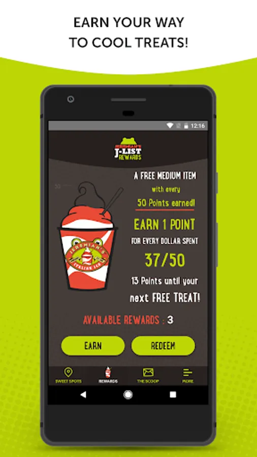 - Earn your way to cool treats! 1 reward point for every $1 purchase, earn a free medium treat at 50 points!