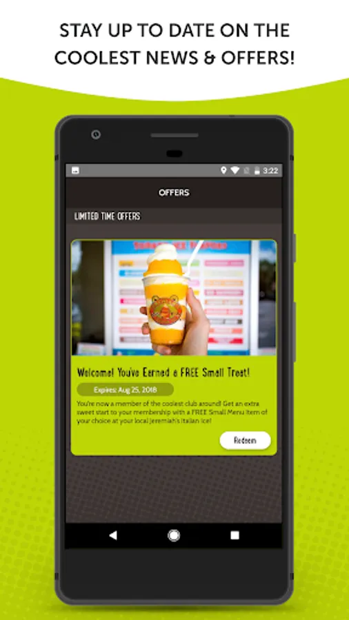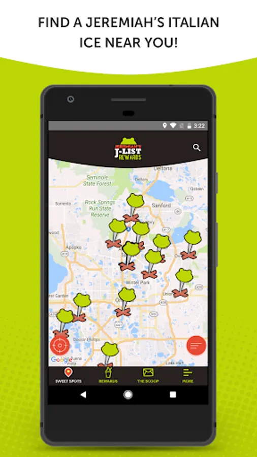 - Map view- Uses your phones GPS to find the closest Jeremiah’s Italian ice store location.