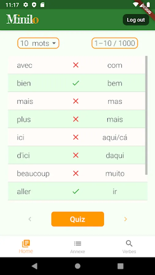 To learn the most used words in the Portuguese language, Minilo simply offers you a vocabulary list and quizzes.