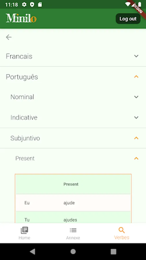 Minilo gives you access to the 1000 most common words in Portuguese and more than a hundred of the most frequent verbs with their conjugations.