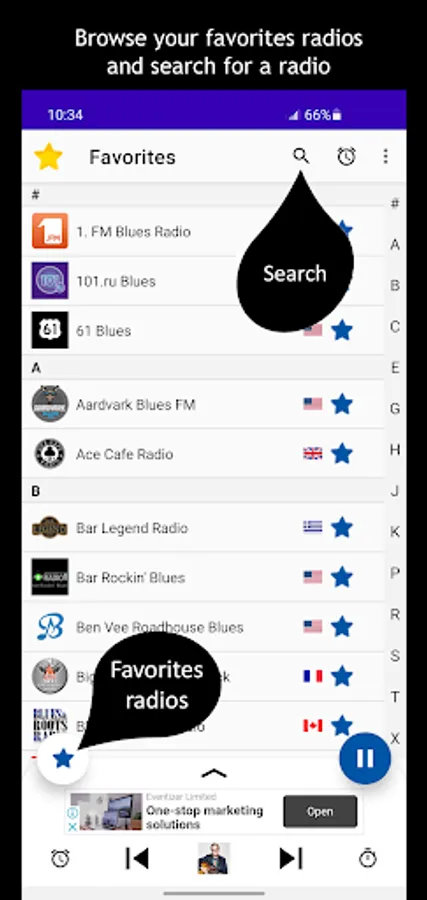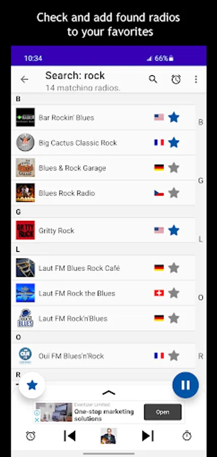- Search a radio by its name in all app (minimum 3 characters, with or without accent)