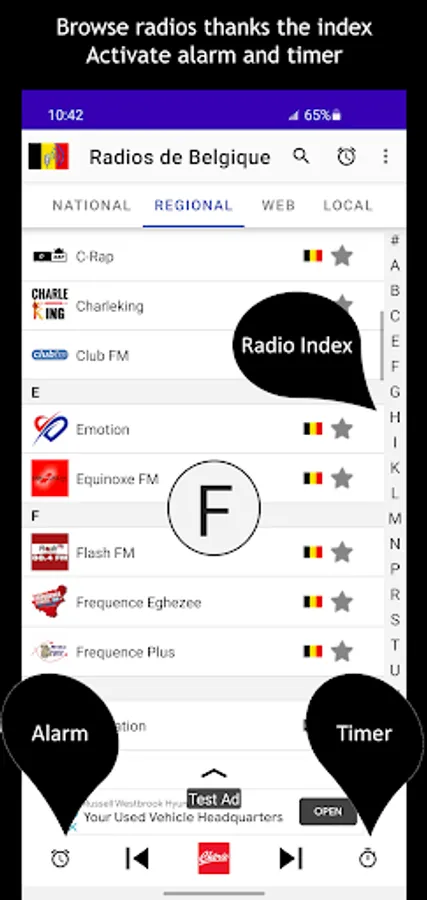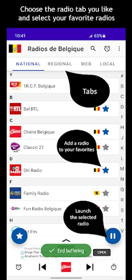 Listen to your Belgium radio stations on your smartphone including 47 national, 73 regional, 139 web radios web, 83 locale radios.