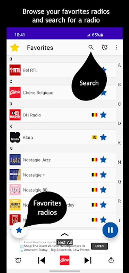 - Search a radio by its name in all app (minimum 3 characters, with or without accent)
