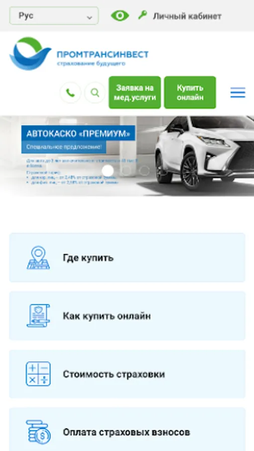 2) Calculator. Insurance applications - an insurance calculator in which you can calculate the cost of insurance (car hull, motor third party, property, etc.). You can also send a claim for insurance.