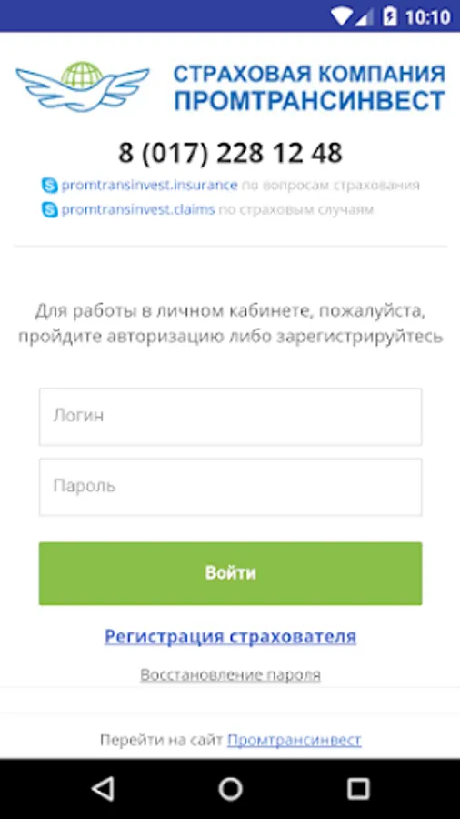 The Promtransinvest application is: