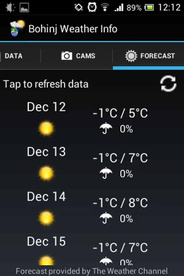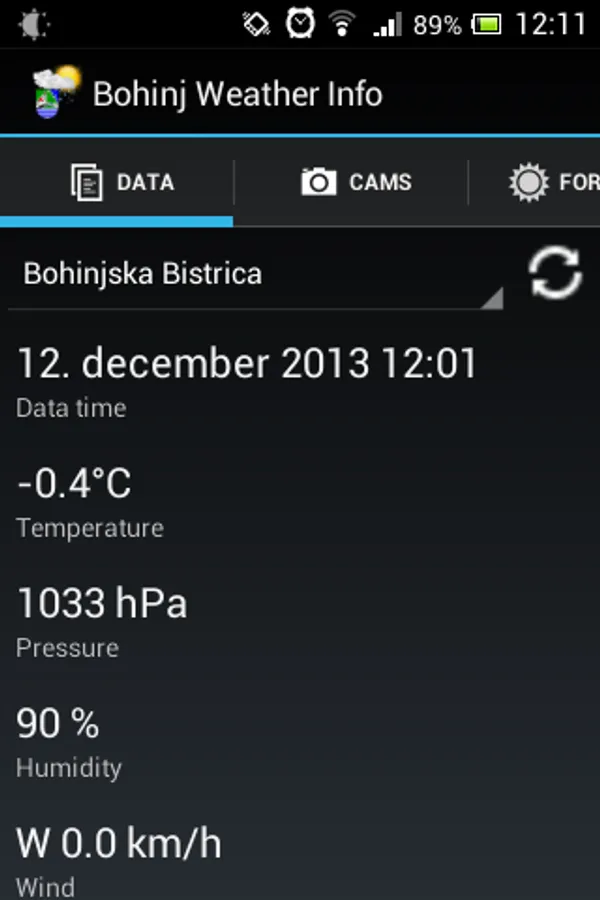 Bohinj Weather Info is an app for monitoring current weather conditions, local webcams and 5-day forecast for Bohinj area.