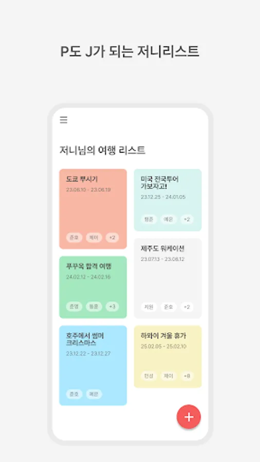 저니리스트에서 친구들과 함께 여행 일정을 짤 수 있어요. 친구들과 함께 가고 싶은 여행지를 저니리스트에서 작성해보세요.