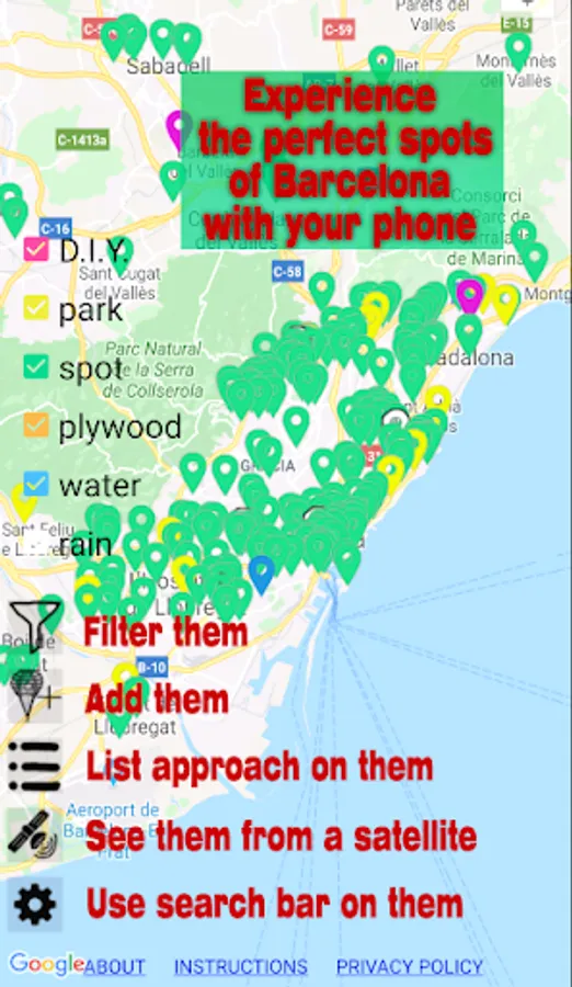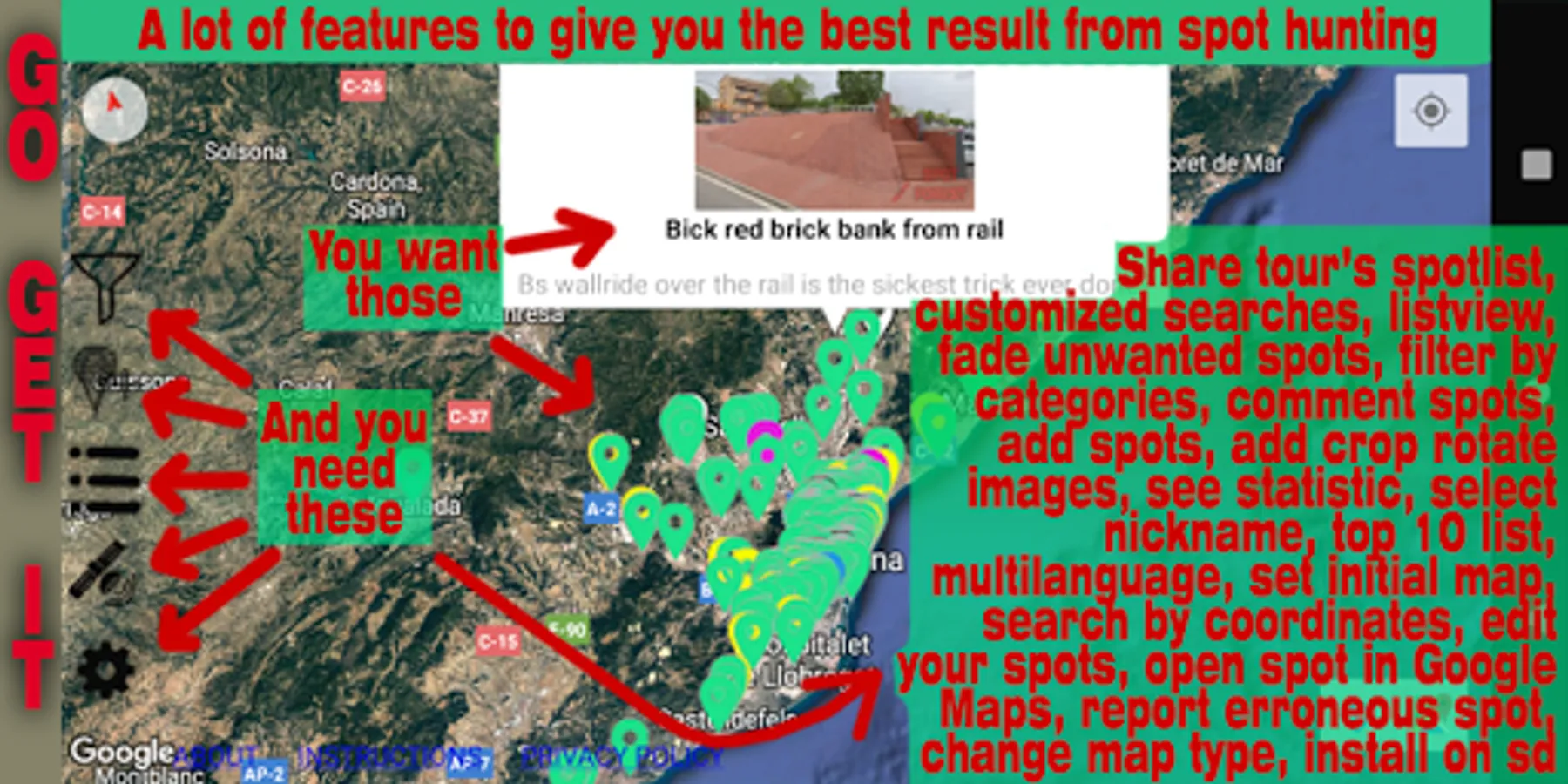 Finally! A great application for Barcelona and the whole Spain skate spot heaven. No extra "tell your friend you were here" features, just street spots and stuff like that. And yeah, a lot of those street spots.