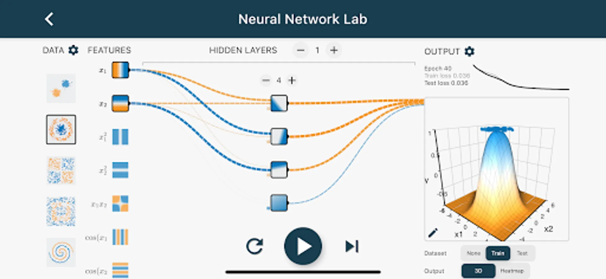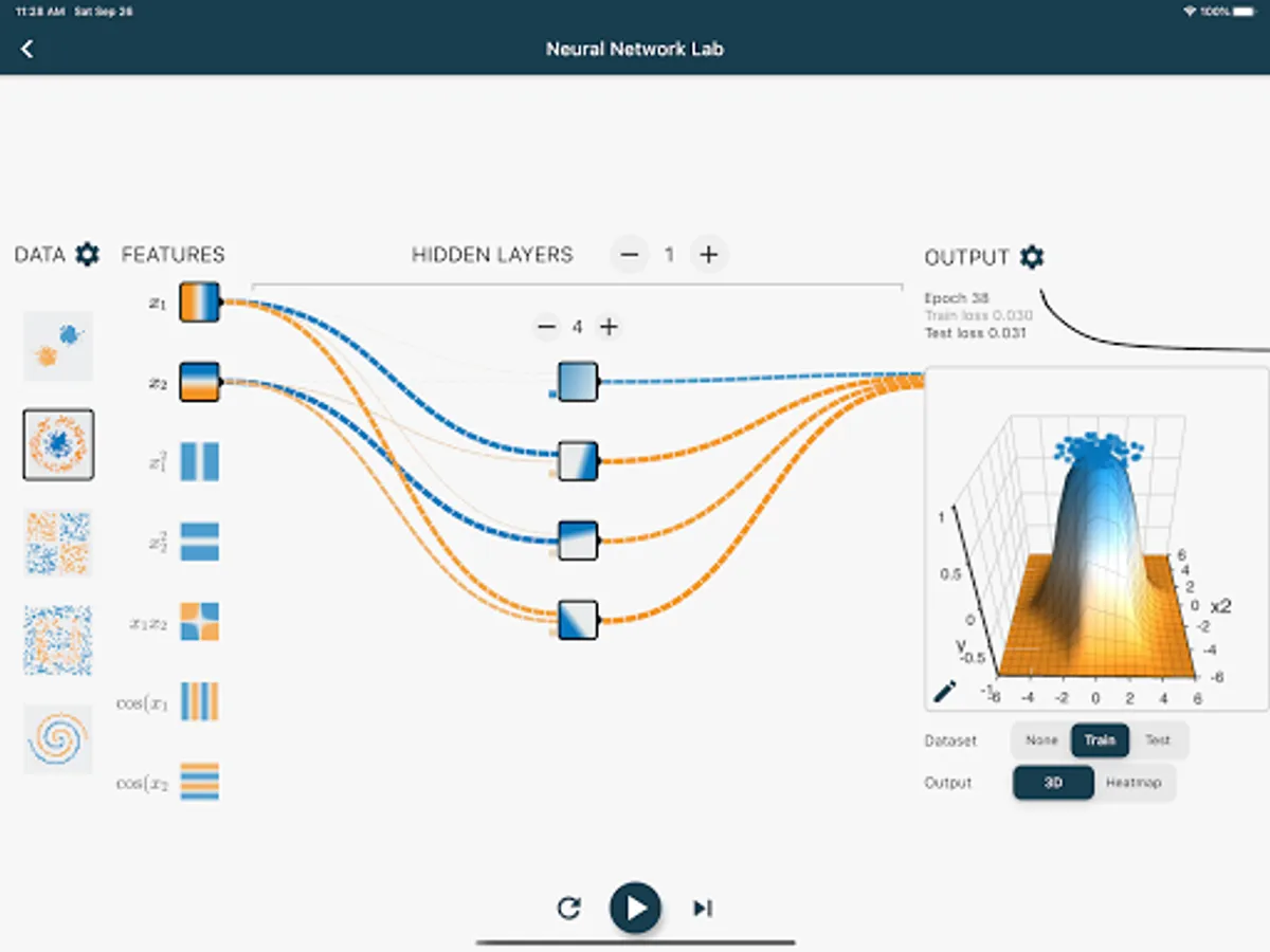 Put neural network lab in your pocket. Variety of datasets: 2D and 3D datasets both with regression and classification. Get the dataset just with a tapping. Do experiments at anytime anywhere.
