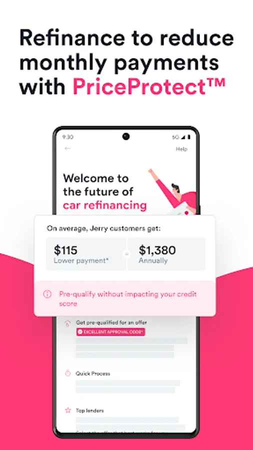 Compare lenders for your car loan with our easy refinancing—and say goodbye to high monthly payments. Get pre-qualified right in the app.