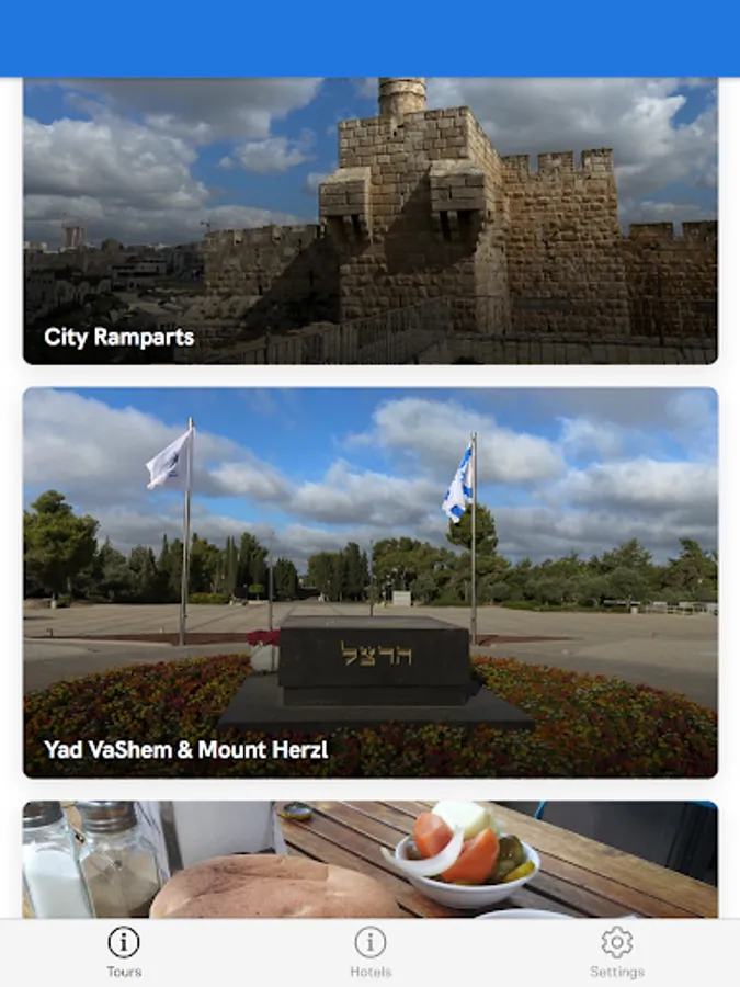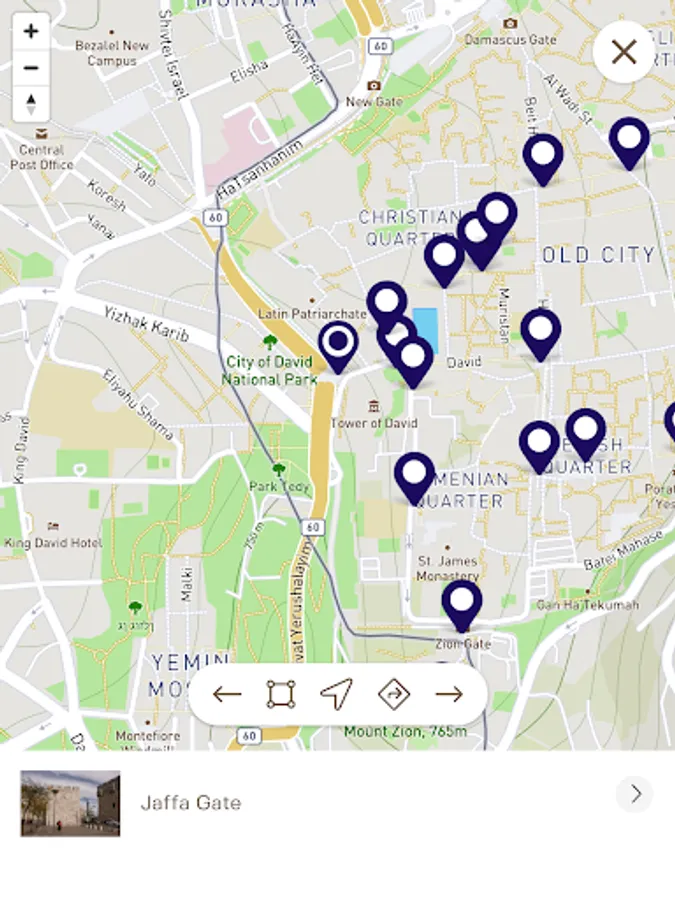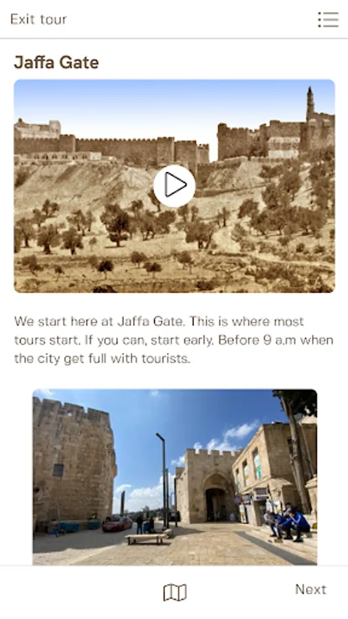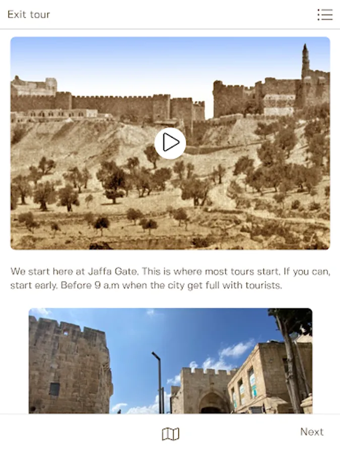I’ve uploaded 4 video tours of Jerusalem to this app. Each tour has about 20 stops and at all times you can see where you are on the map, what the next stop will be and how to get there, and watch a video about the location you’re at. On top of that, I’ve added coupons giving you discounts on great accommodation and tours.