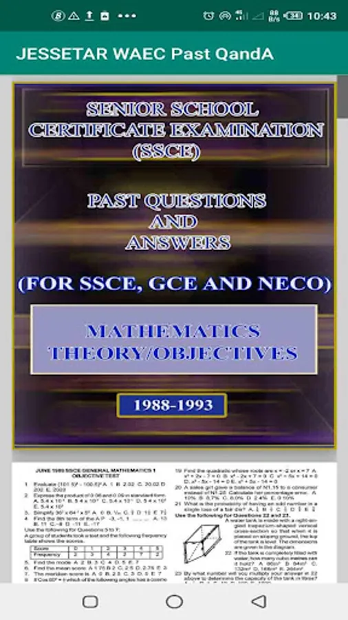 This is the best App for any student that want to come out with flying colors in WAEC, all waec past questions and answers in all subjects from 1988 to 2019 are contained in this App
