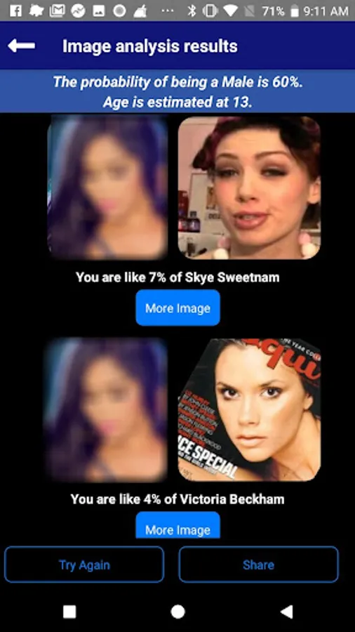 3. Click the Find Similar Soulbutton button to find a celebrity that resembles me