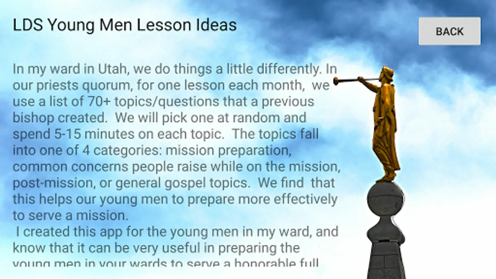 I created this app for the young men in my ward, and know that it can be very useful in preparing the young men in your wards to serve a honorable full time mission.