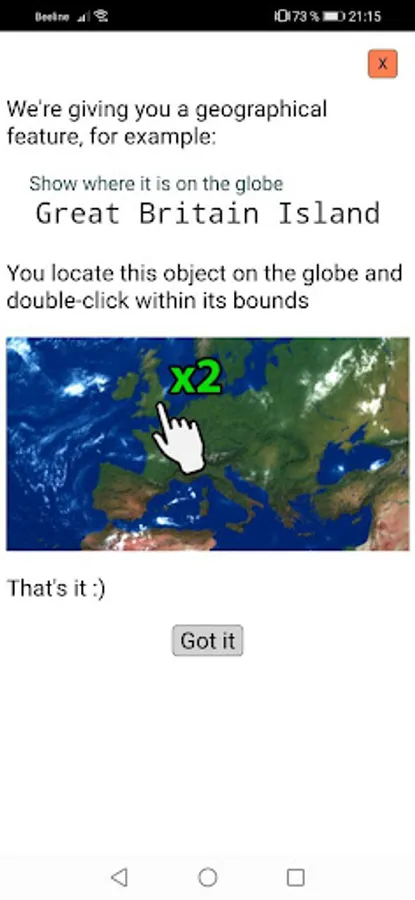 We will show you the name of the geographic feature, and you must show where it is on the map.