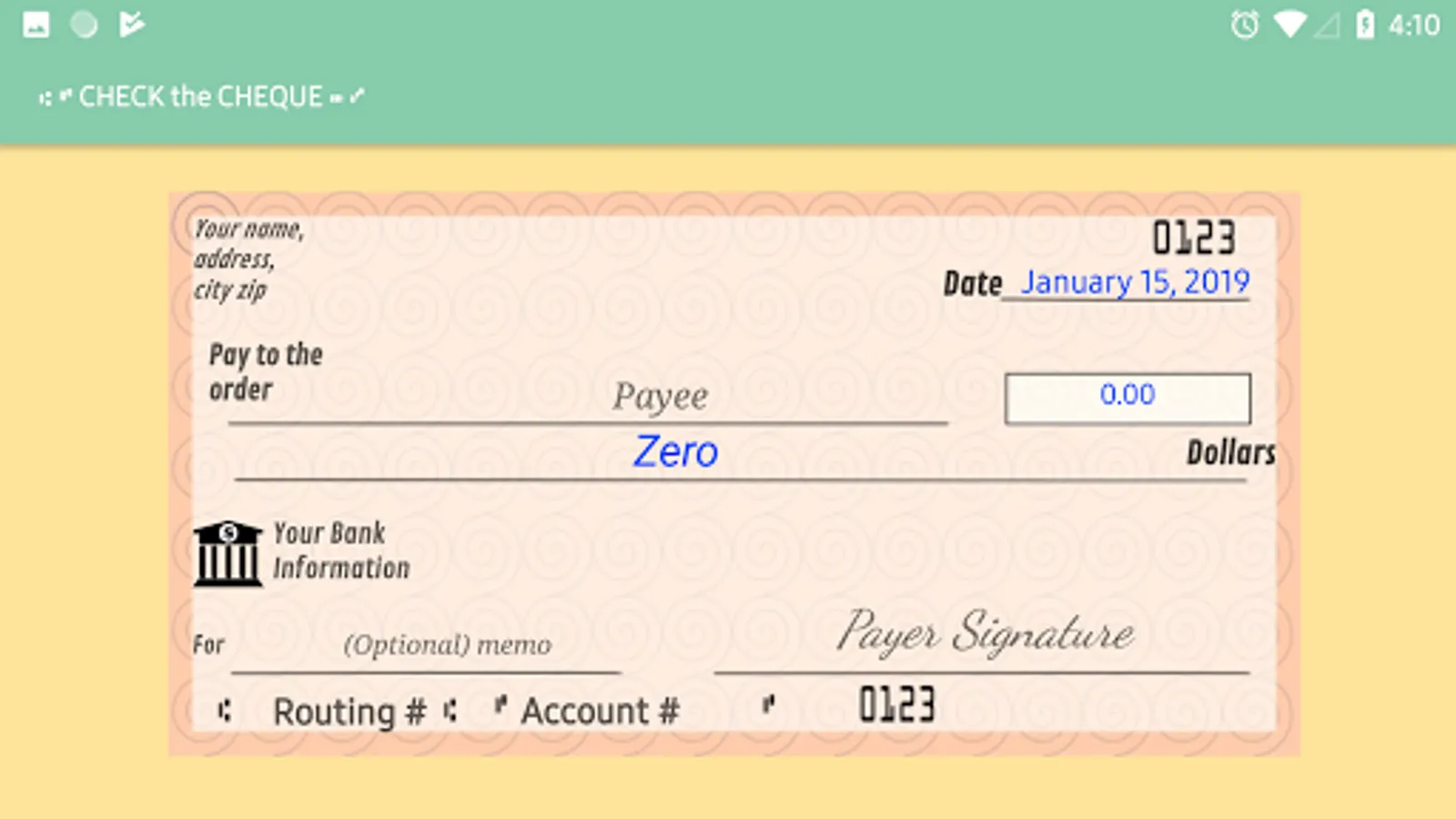 One reason I wrote this app is that people are misspelling the date format and the words for the amount. Also, I don't like how some apps have ads to do simple stuff. This app will:
