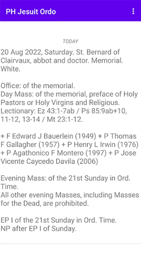 The PH Jesuit Ordo is a digital Ordo app for the Jesuits and partners in the Philippine Province. It contains the list of readings and other liturgical instructions to aid the liturgical celebrations during the liturgical year.